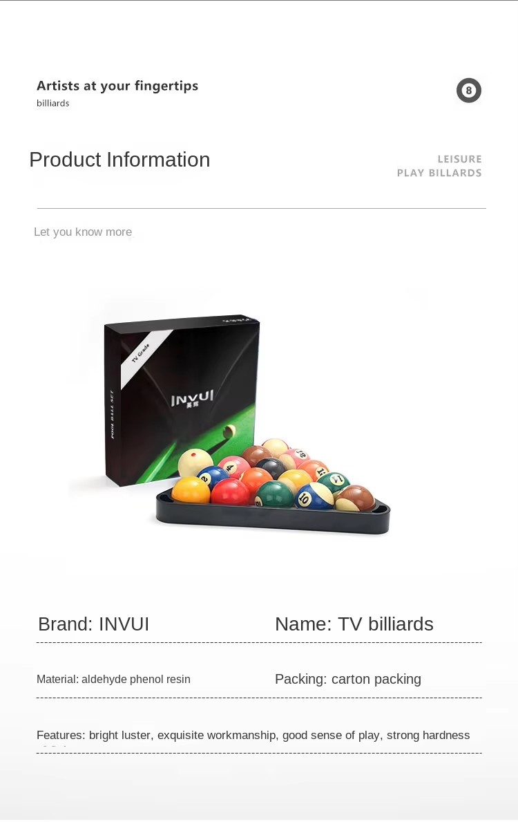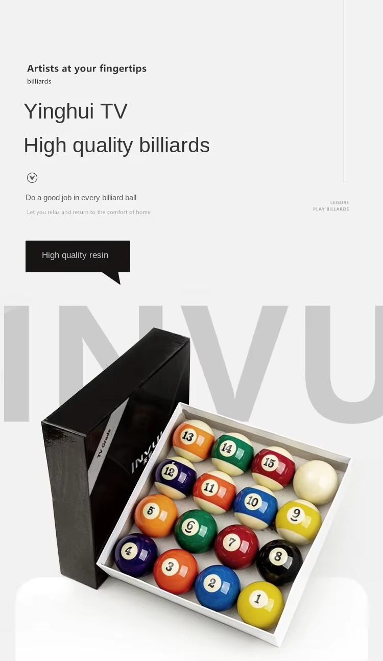 High-Quality Billiard Balls for TV & Crystal Balls, Suitable for Chinese Eight-Ball and Snooker, 16 Pieces per Box